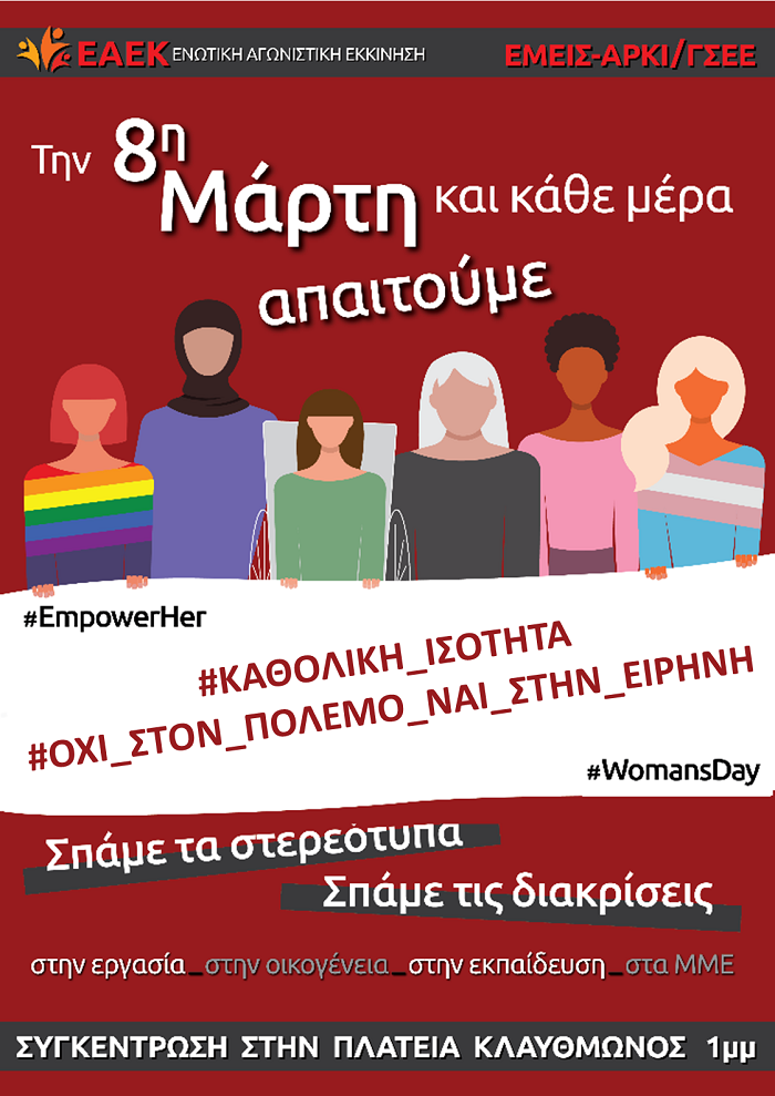 ΕΑΕΚ, ΕΜΕΙΣ-ΑΡΚΙ/ΓΣΕΕ:Ημέρα της Γυναίκας, 8 Μάρτη 2022Όχι στον πόλεμο, ναι στην ειρήνη.